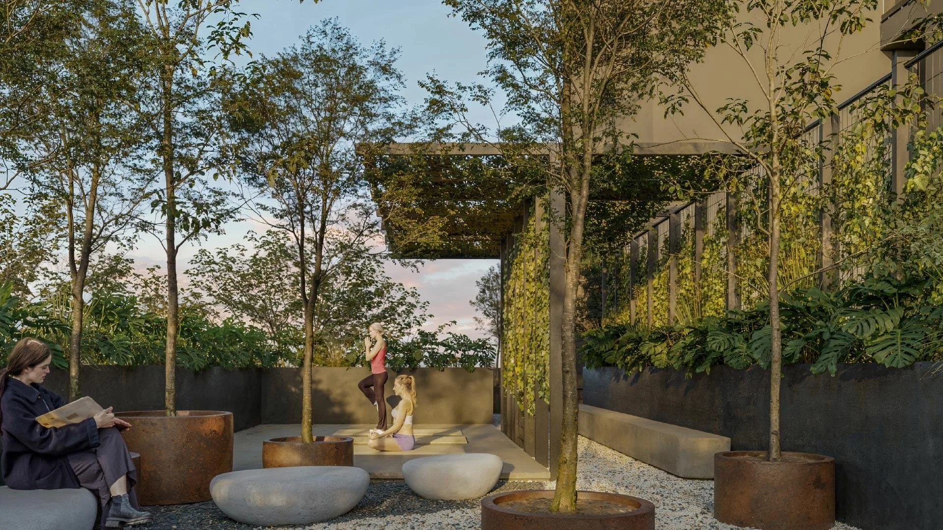 Un Sky Garden diseñado para la tranquilidad, ideal para meditar, leer y contemplar el paisaje, rodeado de calma y naturaleza en las alturas.