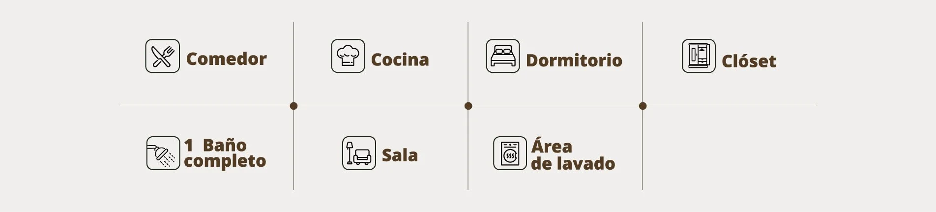 Adyacente a estas áreas, se encuentra un cuarto de lavado discreto y funcional, que aporta comodidad sin alterar la estética general. Cada detalle ha sido cuidadosamente diseñado para maximizar la eficiencia sin sacrificar el estilo, logrando una armonía perfecta entre elegancia y practicidad.